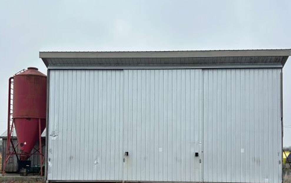 • 39’ x 19’ 3 bay commodity shed, supplement tank, 11’x16‘ storage shed