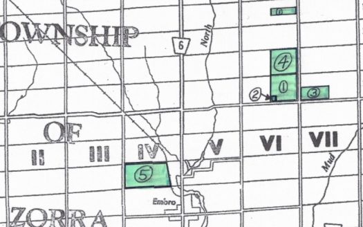 435 Acres in 5 parcels with 391 workable, mostly Embro silt loam, mostly systematically tiled HOUSES: 4 houses Othe